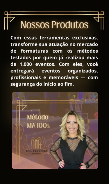Eu sou Mel Ferreira — há 25 anos transformando sonhos em eventos inesquecíveis no Brasil.